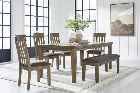 D592-35/01(x4)/00 Dining Table w/4Chair & Bench set